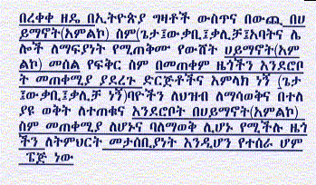 Fact Web seite Visitor infos, "For whatever is hidden is meant to be disclosed, and whatever is concealed is meant to be brought out into the open."Mark 4:22 At present by the name of church and under the umbrella of "God's name"Specially in a false relligious name "Pentes Getta's", Crimes are growing by far more than they have been seen in Ethiopia history. In order to show such kind of Cheating and criminal acts,like Mass murder in Uganda, which is happening to Ethiopians at different times and in different place we have decided to develope Web site which can help as a reference material for such kind Criminal acts which is always kept secret from the World public. This is a good place to have a information which are based on first-hand facts about different persons mostly Ethiopians who were vicitms of the so called "Pentes Geta's"(God's)from some religious groupe in the Name of GOD(Who is the Creator of the universe).Detail .....in "what is New". ...In Amharich